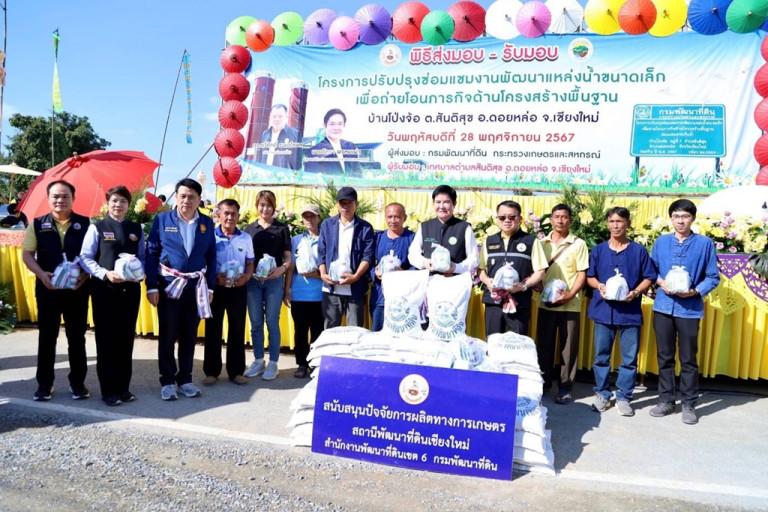 ทั้งนี้ กระทรวงเกษตรฯ โดยกรมพัฒนาที่ดิน บูรณาการร่วมกับหน่วยงานเทศบาล, อบต. ในพื้นที่ ตลอดจนหน่วยงานในระดับอำเภอดอยหล่อ ภาคประชาชน และหน่วยงานที่เกี่ยวข้อง ดำเนินปรับปรุงซ่อมแซมแหล่งน้ำขนาดเล็กฯ สำรวจแหล่งน้ำที่ชำรุดเสียหาย พร้อมกับออกแบบและเพิ่มประสิทธิภาพในการใช้น้ำจากแหล่งน้ำ ด้วยระบบท่อส่งน้ำจากพลังงานแสงอาทิตย์ ประกอบด้วยถังเก็บน้ำความจุ 100 ลบ.ม. จำนวน 2 ถัง พร้อมระบบท่อส่งน้ำ HDPE ความยาวรวม 3,200 เมตร ให้มีความสามารถในการบริหารจัดการน้ำเพื่อการเกษตรและการอุปโภคบริโภค ภายหลังจากดำเนินโครงการฯ สามารถเพิ่มพื้นที่รับประโยชน์โดยรอบประมาณ 500 ไร่ เกษตรกรสามารถใช้ประโยชน์ที่ดินได้อย่างมีประสิทธิภาพ ผลผลิตทางการเกษตรมีคุณภาพตามความต้องการของตลาด เพิ่มรายได้ในครัวเรือน