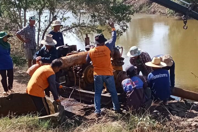 นายราม ธนาคุณ ผู้อำนวยการส่วนเครื่องจักรกล สำนักงานชลประทานที่ 9 มอบหมายให้ นายชวลา วรรณสิทธิ์ หัวหน้าฝ่ายปฎิบัติการสูบน้ำ พร้อมด้วย นายนนทวัฒน์ ยิ้มเจริญ หัวหน้าหมวดปฏิบัติการสูบน้ำบางพลวง และเจ้าหน้าที่ฝ่ายปฏิบัติการสูบน้ำ เข้าดำเนินการติดตั้งเครื่องสูบน้ำ เพื่อสูบน้ำช่วยเหลือเกษตรกรที่ประสบปัญหาขาดแคลนน้ำอุปโภค-บริโภค และการทำเกษตรช่วงฤดูแล้ง