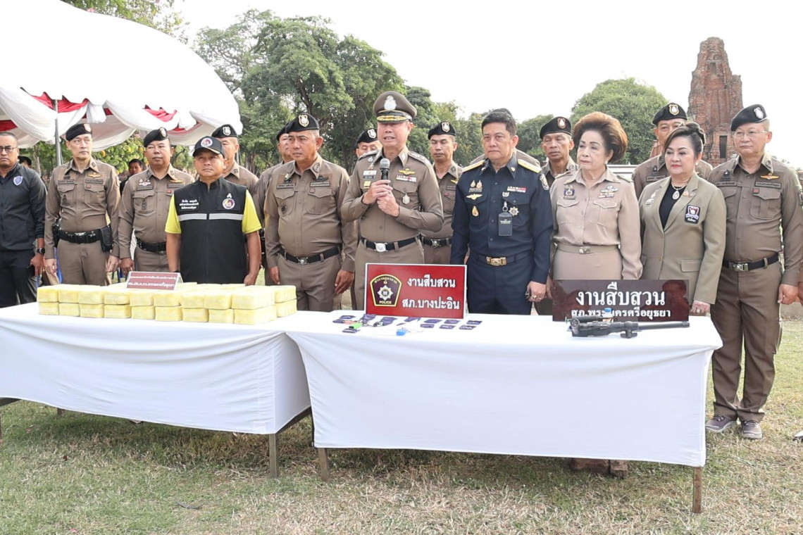 จากนั้น พล.ต.ท.สุรพล เปรมบุตร รรท.ผบช.ภ.1 พล.ต.ต.โชติวัฒน์ เหลืองวิลัย ผบก.ภ.จว.พระนครศรีอยุธยา นางสมทรง พันธ์เจริญวรกุล นายกองค์การบริหารส่วนจังหวัดพระนครศรีอยุธยา นางสุภานันท์ ไวยนิยี กต.ตร.พระนครศรีอยุธยา ร่วมกันแถลงข่าว ผลการปฏิบัติการกวาดล้างยาเสพติดของจังหวัดพระนครศรีอยุธยา โดยสามารถติดตามขยายผลจับกุมยาเสพติดได้ จำนวน 3.3 แสนเม็ด ซึ่งจะดำเนินการสอบสวนเพื่อขยายผลต่อไป