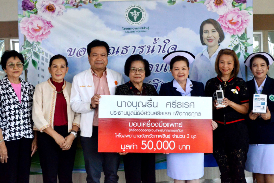 มูลนิธิอัศวินศรีธเรศ เพื่อการกุศล มอบครุภัณฑ์ทางการแพทย์เครื่องวัดความเข้มข้นของออกซิเจนในเลือด 3 เครื่อง มูลค่า ให้โรงพยาบาลกาฬสินธุ์ เพื่อใช้ในหอผู้ป่วยหลังคลอด