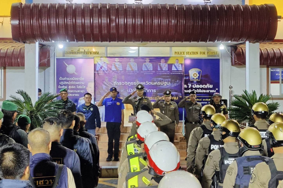 วันศุกร์ที่ 29 พฤศจิกายน 2567 เวลา 20.00 น.ที่บริเวณหน้าอาคารที่ทำการ สถานีตำรวจภูธรโพธิ์แก้ว จังหวัดนครปฐม ภายใต้การอำนวยการสั่งการของ พล.ต.ท.นัยวัฒน์ เผดิมชิต ผบช.ภ.7 พล.ต.ต.ชมชวิณ ปุระธนานนท์ รอง ผบช.ภ.7(สส) พล.ต.ต.พิพัฒน์ ชุ่มมณีกูล รอง ผบช.ภ.7 (ปป) พล.ต.ต.ประสพชัย มัตสยะวนิชกูล ผบก.สส.ภ.7 พล.ต.ต.สุวรรณ์ เชี่ยวนาวินธวัช ผบก.ภ.จว.นครปฐม มอบหมายให้ พ.ต.อ.พงษกร อุปพงษ์ รอง ผบก.ภ.จว.นครปฐม(ปป)พร้อมด้วย พ.ต.อ.อิทธิพล พรเทวบัญชา ผกก.สส.ภ.จว.นครปฐม พ.ต.อ.จักรพงศ์ ตราบดี ผกก.สภ.เขาดิน รรทผกก.สภ.โพธิ์แก้ว พ.ต.ท.โสภณ พุ่มกุมาร รอง ผกก.ป.สภ.โพธิ์แก้ว พ.ต.ท.ธนากร ภูริกวินเลิศ รอง ผกก.สส.สภ.โพธิ์แก้ว นายอรรนพ โคกาอินทร์ ปลัดอำเภอหัวหน้าฝ่ายความมั่นคงอำเภอสามพรานสนธิกำลังร่วมกับเจ้าหน้าที่ตำรวจ สภ.โพธิ์แก้ว เจ้าหน้าที่ตำรวจกก.สส.ภ.จว.นครปฐม เจ้าหน้าที่ฝ่ายปกครอง อาสาสมัครอำเภอสามพราน เจ้าหน้าที่อาสาสมัครมูลนิธิร่วมกตัญญู รวมจำนวน 60 นาย ปล่อยแถวเปิดปฎิบัติการ “ปิดเมือง สยบแว้น จัดระเบียบสังคม ” ออกตั้งจุดตรวจจุดสกัดปิดล้อมพื้นที่ สภ.โพธิ์แก้ว เพื่อทำการตรวจค้นรถและบุคคลต้องสงสัยลักษณะเด็กแว้น เน้นการจับกุมอาวุธปืน ความผิดพรบ.ยาเสพติด และ ความผิดตามกฎหมายอื่นๆ