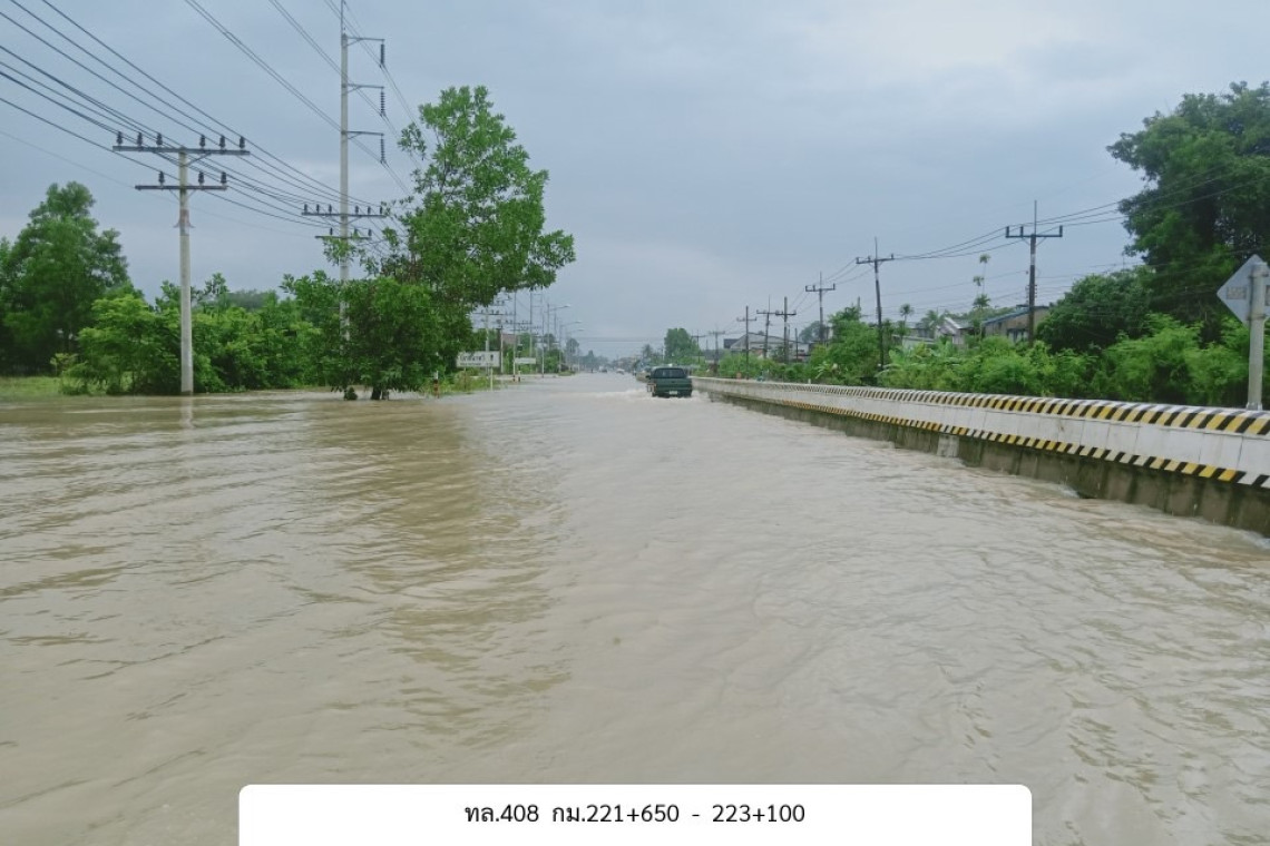 ทล.408 ปลักพ้อ - ด่านประกอบ(เขตแดนไทย/มาเลเซีย) ช่วง กม.ที่ 221+650 - 223+100 อ.นาทวี ระดับน้ำ 30 ซม.