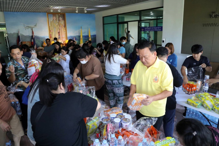 และทีมที่ 2 เจ้าหน้าที่ช่วยลำเลียงถุงยังชีพขึ้นเครื่องบินกรมฝนหลวงและการบินเกษตร (คาซ่า) เพื่อนำส่งต่อให้พื้นที่จังหวัดนราธิวาสต่อเนื่อง จำนวน 2 เที่ยวบิน ในเวลา 08.55 น. และเวลา 10.30 น. และในช่วงบ่ายวันนี้ เจ้าหน้าที่ที่อยู่ในพื้นที่จังหวัดสงขลา ได้ช่วยกันลำเลียงสิ่งของอุปโภคบริโภคและข้าวกล่องแจกจ่ายให้กับประชาชนในอำเภอจะโหนง อำเภอจะนะ จังหวัดสงขลา รวมถึงเจ้าหน้าที่กรมฝนหลวงและการบินเกษตรในส่วนกลาง กรุงเทพฯ ได้ร่วมกันแพ็คถุงยังชีพเพื่อนำขึ้นเครื่องบินคาซ่าในเวลา 16.00 น. เดินทางจากท่าอากาศยานดอนเมือง กรุงเทพฯ ไปยังสนามบินกองบิน 56 อำเภอคลองหอยโข่ง จังหวัดสงขลา
