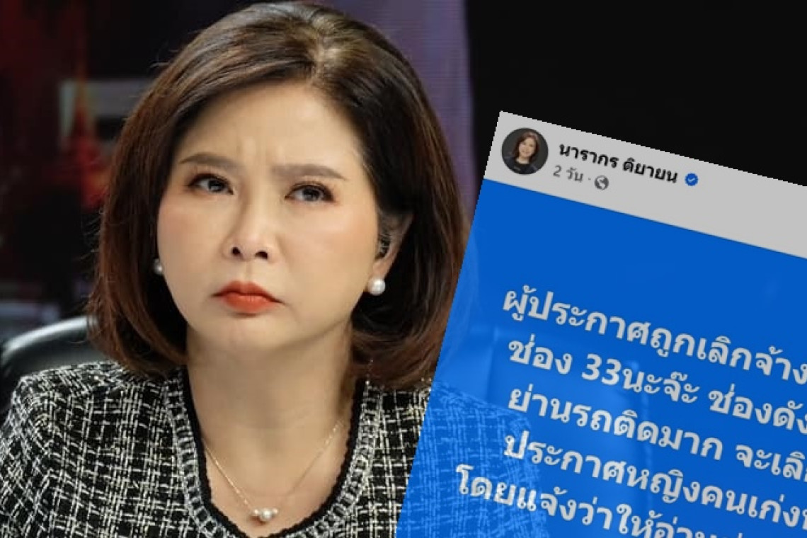 กำลังเป็นที่จับตาหลัง ผู้ประกาศข่าวคนดัง "ต๊ะ นารากร" ออกมาโพสต์คำใบ้ปริศนาว่า "ผู้ประกาศถูกเลิกจ้างไม่ได้มีแค่ช่อง 33นะจ๊ะ ช่องดังเรตติ้งดี านรถติดมาก จะเลิกจ้างผู้ประกาศหญิงคนเก่งนิสัยดี โดยแจ้งว่าให้อ่านข่าวถึงสิ้นปีนี้."
