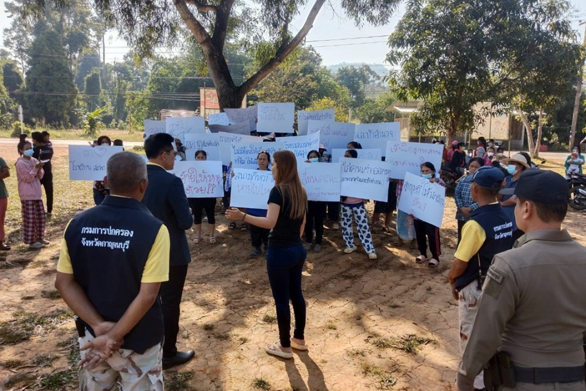 วันทึ่ 2 ธ.ค.67 ชาวบ้านหมู่บ้านสะพานลาว ต.สหกรณ์นิคม อ.ทองผาภูมิ จังหวัดกาญจนบุรี ได้ร่วมกันพร้อมถือป้ายข้อความขับไล่ ผอ.โรงเรียนแห่งหนึ่ง ตั้งอยู่ ต.สหกรณ์นิคม อ.ทองผาภูมิ ให้ออกนอกพื้นที่เนื่องจากทนพฤติกรรมและการกระทำตัวไม่เหมาะสม เข้ากับชาวบ้านไม่ได้ พร้อมทั้งชาวบ้านได้เรียกร้องให้ทาง ผอ.สำนักเขตการประถมศึกษา ได้ทำการตรวจสอบพฤติกรรม และการบริหารงานจำนวน 6 ข้อ โดยมีพฤติกรรมดังต่อไปนี้