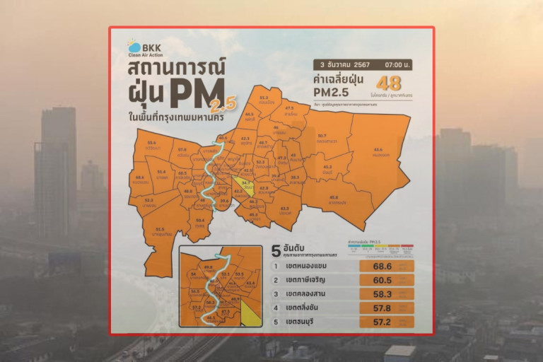ค่าเฉลี่ยของกรุงเทพมหานคร 48.0 มคก./ลบ.ม.