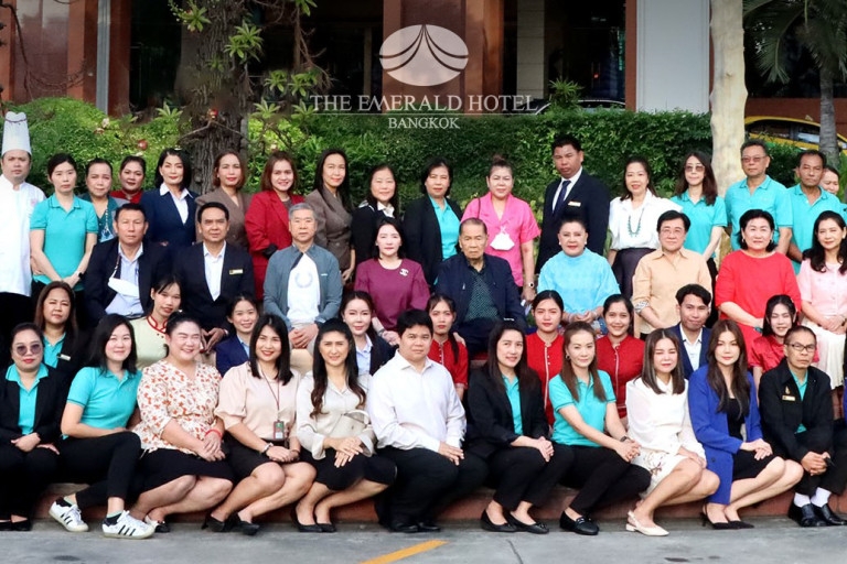 ดร.ปรีชา ถิรกิจพงศ์ ประธานกรรมการ โรงแรม ดิ เอมเมอรัลด์ เป็นประธานในพิธีทำบุญเลี้ยงพระพร้อมตักบาตรข้าวสารอาหารแห้งร่วมกันกับฝ่ายบริหารและพนักงาน อาทิ สุรภา เมฆศรี ฐิติมา ถิรกิจพงศ์ รานนท์ อาสาสนา และ สรินธร กาญจนทวี เนื่องในโอกาส “ฉลองโรงแรมครบรอบ 32 ปี” โดยมี ฐนนท์ศรณ์ เลิศฤทธิ์ศิริกุล มาร่วมแสดงความยินดีด้วย