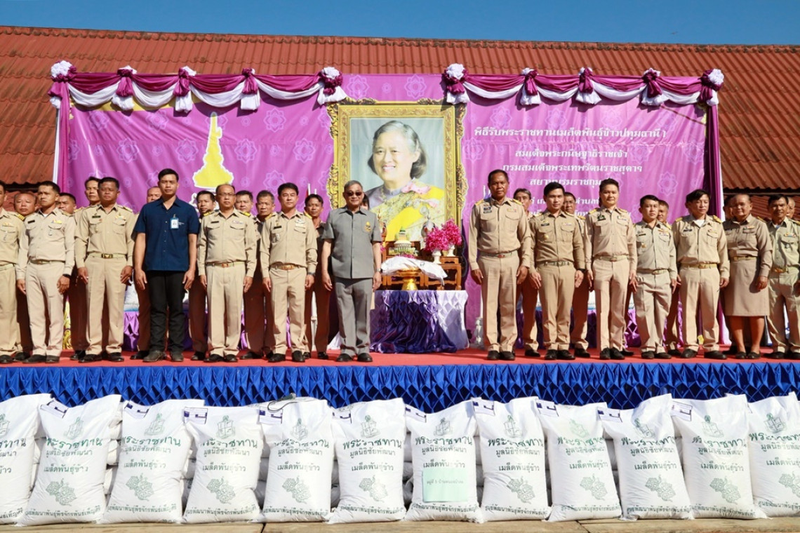 วันที่ 3 ธ.ค.67 ที่ลานวัดป่าสักน้อย ตำบลป่าสัก อำเภอเชียงแสน จังหวัดเชียงราย พลเอก เจษฎา ศรีสุภาพ กรรมการและรองเลขาธิการมูลนิธิชัยพัฒนา เป็นประธานในพิธีพระราชทานเมล็ดพันธุ์ข้าวปทุมธานี 1 จาก สมเด็จพระกนิษฐาธิราชเจ้า กรมสมเด็จพระเทพรัตนราชสุดาฯ สยามบรมราชกุมารี จำนวน 52,875 กิโลกรัม ให้แก่เกษตรกรและราษฎรจำนวน 317 ราย จาก 13 หมู่บ้าน ในพื้นที่ตำบลป่าสัก อำเภอเชียงแสน จังหวัดเชียงราย ซึ่งประสบกับปัญหาภัยแล้งจนทำให้มีพื้นที่ปลูกข้าวได้รับความเสียหายเป็นจำนวน 3,525 ไร่ โดยมีนายประสงค์ หล้าอ่อน รองผู้ว่าราชการจังหวัดเชียงราย พร้อมด้วยหัวหน้าส่วนราชการ หน่วยงาน และประชาชนในพื้นที่ร่วมให้การต้อนรับ