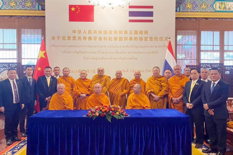 วันที่ 3 ธ.ค.67 รศ.ชูศักดิ์ ศิรินิล รัฐมนตรีประจำสำนักนายกรัฐมนตรี พร้อมด้วย ดร.นิยม เวชกามา ผู้ช่วยรัฐมนตรีประจำสำนักนายกรัฐมนตรี ในนามคณะรัฐบาลไทย และพระเถระชั้นผู้ใหญ่ของไทย เดินทางถึงกรุงปักกิ่ง สาธารณรัฐประชาชนจีน ร่วมลงนามหนังสือบันทึกความเข้าใจร่วมกัน (เอ็มโอยู) ระหว่างรัฐบาลไทยและรัฐบาลจีน ในการจัดพิธีอัญเชิญพระบรมสารีริกธาตุ (พระเขี้ยวแก้ว) จากวัดหลิงกวง กรุงปักกิ่ง สาธารณรัฐประชาชนจีน มาประดิษฐานในประเทศไทยเป็นการชั่วคราว ณ ท้องสนามหลวง ระหว่างวันที่ 4 ธันวาคม 2567 ถึง 14 กุมภาพันธ์ 2568 รวม 73 วัน