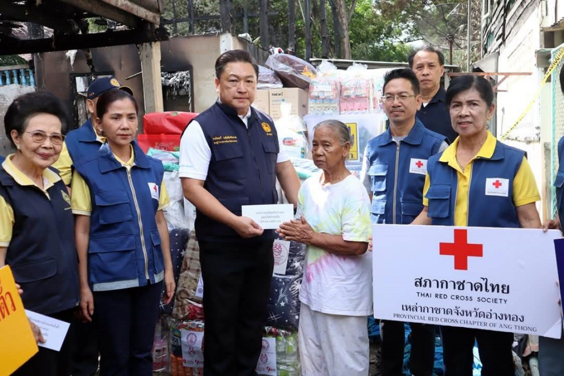 โดยเหล่ากาชาดจังหวัดอ่างทอง ได้มอบเงินช่วยเหลือผู้ประสบภัยกรณีเสียหายทั้งหลัง หลังละ 8,000 บาท จำนวน 3 หลัง และเสียหายบางส่วน หลังละ 4,000 บาท จำนวน 1 หลัง พร้อมมอบถุงยังชีพ ที่นอน มุ้ง ผ้าห่ม ผ้าเช็ดตัว พัดลม และน้ำดื่ม ขณะที่สำนักงานป้องกันและบรรเทาสาธารณภัยจังหวัดอ่างทอง มอบกล่องช่วยเหลือผู้ประสบภัย (Asean Family Kit) และสำนักงานพัฒนาสังคมและความมั่นคงมนุษย์จังหวัดอ่างทอง ร่วมมอบถุงยังชีพอีกจำนวนหนึ่ง