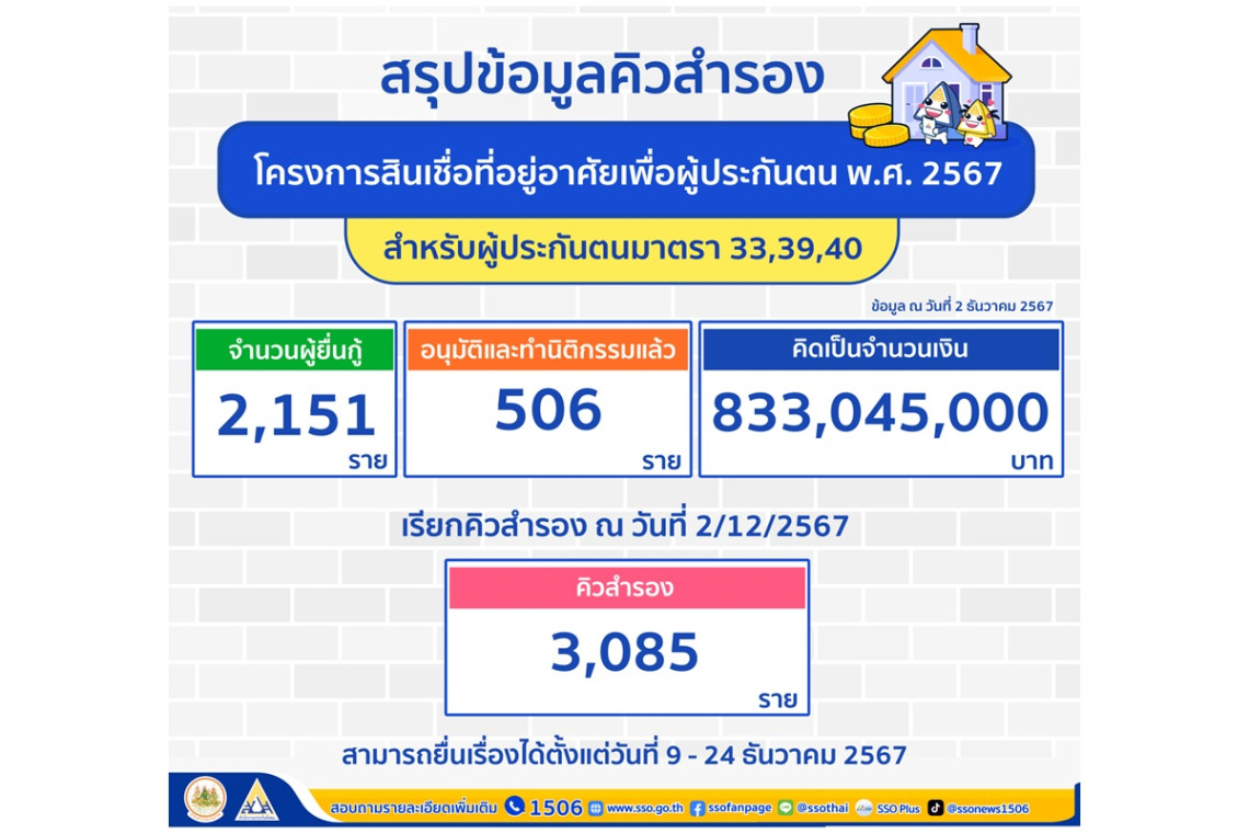 เตรียมตัวให้พร้อม คิวสำรองผู้ประกันตน 3 พันกว่ารายยื่น รับสิทธิสินเชื่อที่อยู่อาศัยเพื่อผู้ประกันตน ยื่น 9-24 ธ.ค.67