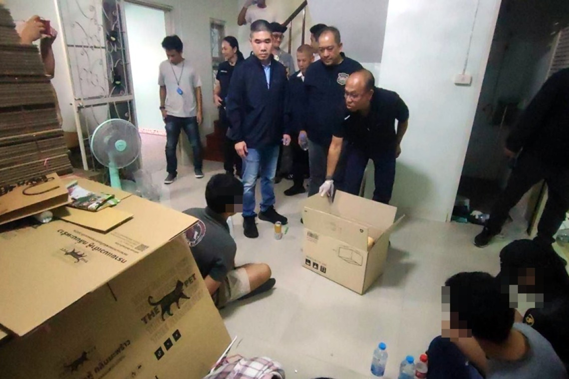 เมื่อเวลา 16.00 น. วันที่ 7 พ.ย.67 พล.ต.ท.สันติ ชัยนิรามัย รรท.ผบช.ปส. พล.ต.ต. อดิศ เจริญสวัสดิ์ ผบก.ปส.3 พล.ต.ต.อิทธิพล จันทร์ศรีบุตร ผบก.ขส. บช.ปส.ว่าที่ร้อยตรีอากาศ ปานแย้ม ผู้เชี่ยวชาญด้านการป้องกันและปราบปรามยาเสพติดภาค1 พล.ต.ต.ยุทธนา จอนขุน ผบก.จ.ปทุมธานี พร้อมเจ้าหน้าที่ตำรวจปราบปรามยาเสพติดได้ร่วมกันจับกุมผู้ต้องหาได้ 5 คน ชาย 4 หญิง 1 คน พร้อมของกลางยาบ้ากว่า 6 ล้าน 4 แสนเม็ด ภายในบ้านหลังหนึ่ง หมู่บ้านพฤกษา 17 ตำบลลาดสวาย อำเภอลำลูกกา จังหวัดปทุมธานี และตรวจยึดรถนั่งส่วนบุคคลยี่ห้อฟอร์ด 4 ประตู ทะเบียน กทม. และรถยนต์เก๋งยี่ห้อ Honda Accord ทะเบียน กทม. ตรวจสอบภายในบ้านพบถุงดำ ถุงปุ๋ย และผ้าขาวม้าที่ใช้ขนยาบ้ามาจากภาคเหนือ พร้อมกับยาบ้านตั้งวางอยู่ที่หลังบ้าน และภายในรถนั่งส่วนบุคคลยี่ห้อฟอร์ด 4 ประตู ทะเบียน กทม. พร้อมกันนี้ยังพบลังกระดาษเขียนเป็นภาษาอังกฤษว่า Aqua Box จำหน่ายอุปกรณ์เลี้ยงปลาและตู้ไม้น้ำ