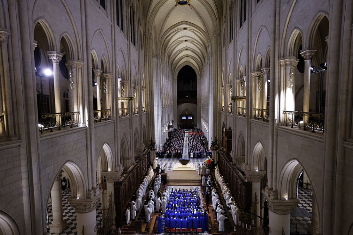 โดยประธานาธิบดีแอมานุแอล มาครง ผู้นำฝรั่งเศส กล่าวขอบคุณทุกภาคส่วน ไม่ว่าจะเป็นบรรดาผู้มาร่วมพิธีเปิด รวมถึงผู้มีส่วนช่วยกันบูรณะซ่อมแซมมหาวิหารฯ จนสามารถกลับมาเปิดให้คริสตศาสนิชนได้เข้าชมและประกอบพิธีทางศาสนาได้อีกครั้ง