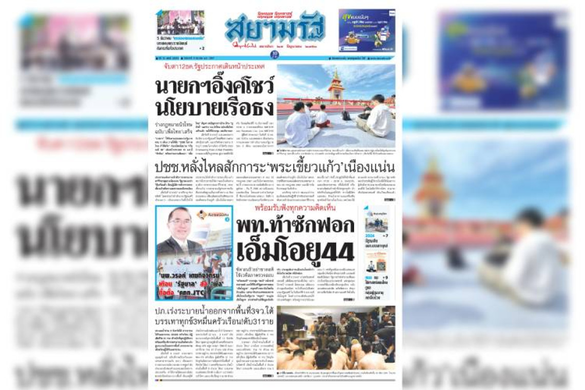 หน้า 1 หนังสือพิมพ์สยามรัฐรายวัน ฉบับวันจันทร์ที่ 9 ธันวาคม 2567
