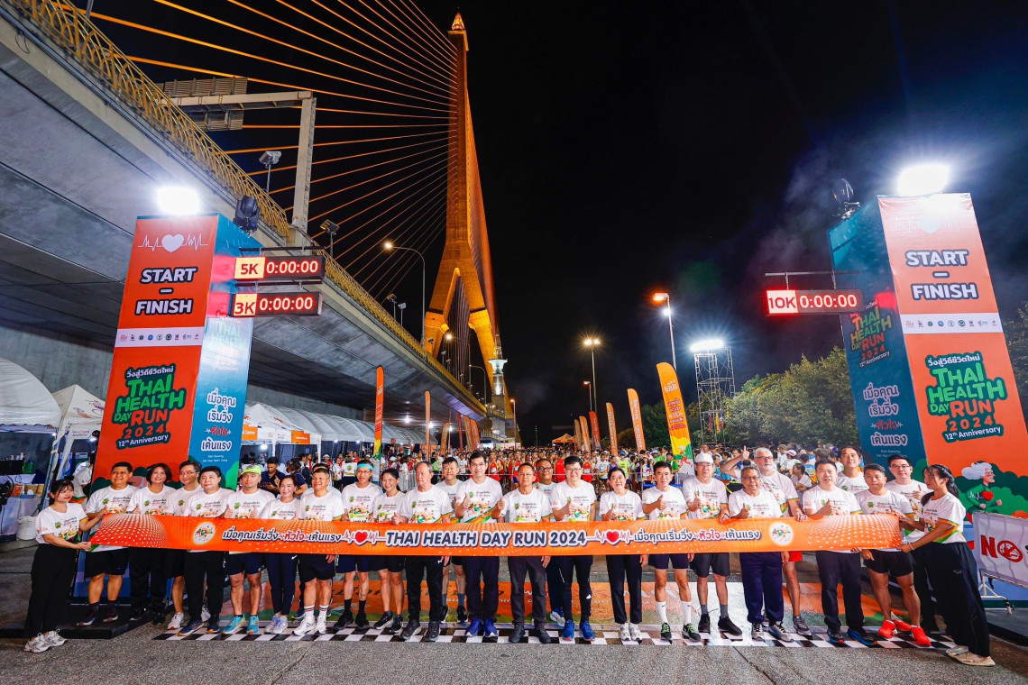 เมื่อวันที่ 8 ธ.ค. 2567 ที่ผ่านมา บริเวณใต้สะพานพระราม 8 กรุงเทพฯ นายสมศักดิ์ เทพสุทิน รัฐมนตรีว่าการกระทรวงสาธารณสุข ในฐานะรองประธานกรรมการกองทุนสนับสนุนการสร้างเสริมสุขภาพ (สสส.) คนที่ 1 กล่าวว่า สสส. ร่วมกับ สมาพันธ์ชมรมเดิน-วิ่งเพื่อสุขภาพไทย และภาคีเครือข่าย จัดกิจกรรมเดิน-วิ่ง Thai Health Day Run 2024 วิ่งสู่วิถีชีวิตใหม่ ครั้งที่ 12 ภายใต้แนวคิด "เมื่อคุณเริ่มวิ่ง หัวใจเต้นแรง" เน้นสร้างความรู้ ความเข้าใจ ให้ประชาชนตระหนักถึงความสำคัญของการสร้างมาตรฐานด้านความปลอดภัยในงานกีฬามวลชนประเภทงานวิ่ง มีมาตรฐานความปลอดภัยทางการแพทย์ พร้อมพัฒนานวัตกรรมส่งเสริมให้นักวิ่งเตรียมความพร้อมของร่างกายก่อนวิ่ง นำไปสู่ต้นแบบการจัดงานวิ่งที่ได้มาตรฐานความปลอดภัย มุ่งเป้ายกระดับเป็น 1 ในสนามต้นแบบด้านความปลอดภัยและการแพทย์ให้แก่วงการงานวิ่งในอนาคต รวมถึงสร้างสังคมกระฉับกระเฉง ส่งเสริมให้เกิดนักวิ่งหน้าใหม่เพิ่มขึ้น เพื่อลดความเสี่ยงเกิดโรคไม่ติดต่อ (NCDs)