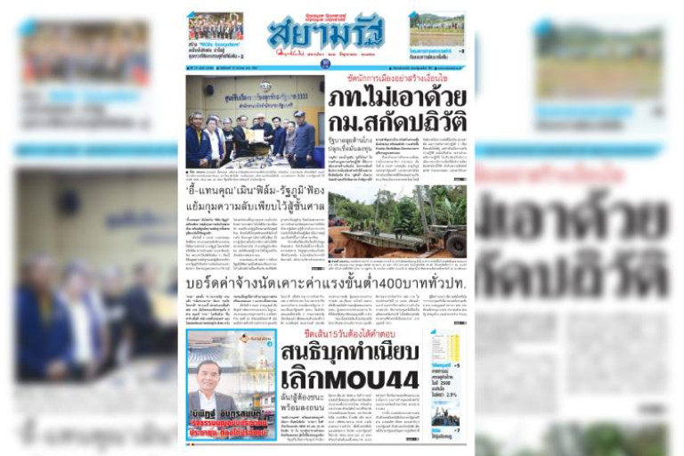 หน้า 1 หนังสือพิมพ์สยามรัฐรายวัน ฉบับวันอังคารที่ 10 ธันวาคม 2567