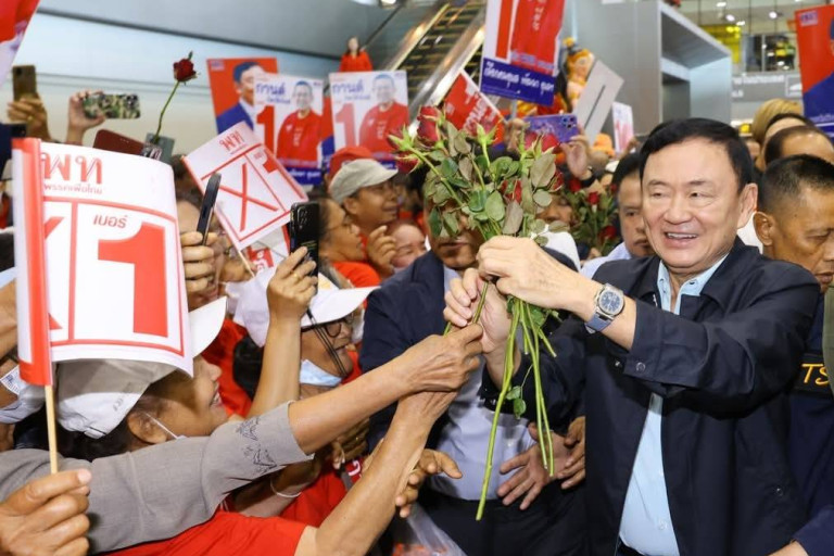‘เสื้อแดงอุบลฯ’ ล้นสนามบิน! แห่ต้อนรับ ’ทักษิณ‘ ปราศรัยมื้อแรก ถิ่นเมืองดอกบัว ช่วย ’กานต์ กัลป์ตินันท์‘ หาเสียงนายก อบจ. บ่ายนี้