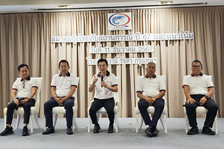 วันที่ 11 ธ.ค.67 นายเอกพจน์ ยอดพินิจ นายกสมาคมกุ้งไทย นำทีมคณะกรรมการบริหารสมาคมฯ ประกอบด้วย นายบรรจง นิสภวาณิชย์ ที่ปรึกษาสมาคม และประธานสมาพันธ์การเพาะเลี้ยงสัตว์น้ำไทย นายปกครอง เกิดสุข อุปนายกสมาคมฯ และประธานที่ปรึกษาชมรมผู้เลี้ยงกุ้งจังหวัดกระบี่ นายปรีชา สุขเกษม อุปนายกสมาคมฯ และนายพิชญพันธุ์ สลิลปราโมทย์ กรรมการบริหารสมาคมกุ้งไทยและประธานชมรมผู้เลี้ยงกุ้งสุราษฎร์ธานี กล่าวถึงสถานการณ์กุ้งของไทย ปี 2567 ว่า ผลผลิตกุ้งเลี้ยงโดยรวม อยู่ที่ 270,000 ตัน ลดลงเล็กน้อยจากปีที่ผ่านมา เนื่องจากปัญหาโรคระบาด สภาพอากาศแปรปรวน กระทบคุณภาพลูกกุ้ง และการเลี้ยงของเกษตรกร ราคากุ้งตกต่ำ ส่งผลให้เกษตรกรบางส่วนชะลอการลงกุ้ง ชื่นชมรัฐบาล และกระทรวงเกษตรฯ ซึ่งได้ประกาศนโยบายการแก้ไขปัญหากุ้งทะเลเป็นวาระแห่งชาติ เสนอของบ 2,000 ล้าน แก้ปัญหากุ้งทั้งระบบ เน้นแก้ปัญหาโรคกุ้งอย่างเป็นรูปธรรมให้ได้ภายใน 3 ปี หยุดความเสียหายกว่า 600,000 ล้าน เพิ่มผลผลิตกุ้งคุณภาพ 400,000 ตัน ทวงคืนมูลค่าการส่งออก 50,000 ล้าน กลับเข้าประเทศ