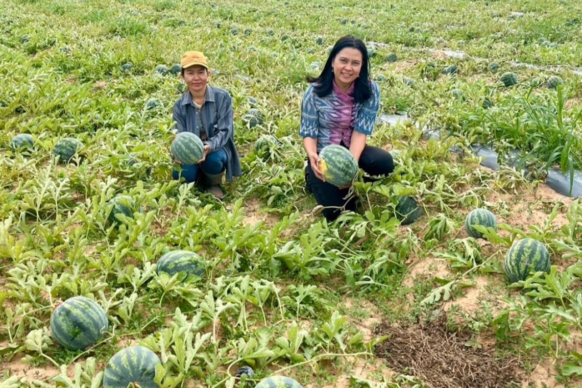 นางรจนา เตียวพานิชย์กิจ นักวิชาการส่งเสริมการเกษตรชำนาญการ สำนักงานเกษตรอำเภอเลิงนกทา จังหวัดยโสธรเปิดเผยว่าในการลงพื้นที่ในครั้งนี้เพื่อติดตามเยี่ยมพร้อมทั้งแนะนำการป้องกันกำจัดโรค แมลงศัตรูพืช ให้กับนางสาวนริศรา ภูตะเวช เกษตรกรบ้านหนองแคนน้อย ตำบลบุ่งค้า อำเภอเลิงนกทาที่ปลูกแตงโมจำหน่ายเมล็ดพันธ์ุมากว่า 7 ปีซึ่งปลูกแตงโมจำนวน 3 ไร่ ใช้ระยะเวลาในการปลูกประมาณ 3 เดือน และปลูก 3 ครั้งต่อปีและจำหน่ายเมล็ดพันธ์ุให้บริษัทเอกชนซึ่งในรอบเดือนกรกฏาคม-กันยายน 2567 เกษตรกรได้ผลผลิตเมล็ดพันธ์แตงโมที่จำหน่ายราคากิโลกรัมละ 2,500 บาท จำนวน 96 กิโลกรัม และราคากิโลกรัมละ 4,800 บาท จำนวน 16 กิโลกรัมรวม 316,800 บาท สร้างรายได้ให้กับเกษตรกรเป็นอย่างดี