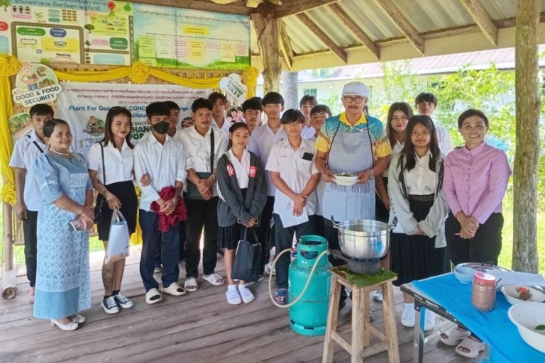 วันที่ 12 ธ.ค.67 นายสุกิจ มีพริ้ง นายอำเภอท่าฉาง ร่วมน้อมนำแนวพระราชดำริของสมเด็จพระกนิษฐาธิราชเจ้า กรมสมเด็จพระเทพรัตนราชสุดาฯ สยามบรมราชกุมารี สู่ปฏิบัติการปลูกผักสวนครัว เพื่อสร้างความมั่นคงทางอาหาร ในการขับเคลื่อนกิจกรรมเพื่อคุณภาพชีวิตที่ดีและมีความมั่นคงทางอาหาร (Good&Food Security) เพื่อสานพลังความต่อเนื่องในการสร้างความมั่นคงทางอาหารอย่างยั่งยืน ณ บริเวณศูนย์เรียนรู้โครงการอันเนื่องมาจากพระราชดำริอำเภอท่าฉาง ตั้งอยู่ภายในบริเวณที่ว่าการอำเภอท่าฉาง หมู่ที่ 2 ตำบลเขาถ่าน อำเภอท่าฉาง จังหวัดสุราษฎร์ธานี โดยการนำผลผลิตจากศูนย์เรียนรู้โครงการอันเนื่องมาจากพระราชดำริอำเภอท่าฉาง ไปประกอบอาหารพื้นถิ่นรสชาติอร่อยอย่าง “แกงเลียงทุ่มเคยทุ่มเกลือ” เมนูบ้าน ง่าย ๆ สไตล์ปักษ์ใต้ มีรสชาติหวานอร่อยจากผัก ปลอดสารพิษและมีประโยชน์ต่อร่างกาย เป็นอาหารสมุนไพรแก้ไข้หวัดหัวลมเป็นอย่างดี เครื่องปรุงประกอบด้วย เคยชนิดดี เกลือ เล็กน้อย หอมแดง และผักสด ซึ่งมีรสหวานตามธรรมชาติ ผักหวาน ยอดตำลึง ยอดฟักทอง มะละกอดิบ เผือก หัวมัน ใบเหลียง ยอดผ้าร้ายห่อทอง ฟักเขียวและไข่ไก่บ้าน เพิ่มโปรตีน วิธีปรุง เอาน้ำสะอาดพอประมาณใส่หม้อตั้งไฟให้เดือด ใส่เคยกุ้ง เกลือ เล็กน้อยพอประมาณ หอมแดงทุบ ตั้งไฟต่อไปจนเคยละลายหมดและรอจนเดือดอีกครั้ง จึงใส่ผักที่เตรียมไว้ลงไปเมื่อเดือดก็ยกลง รับประทานกับข้าวสวย ซดร้อน ๆ คล่องคอดี ได้วิตามินจากผัก และแก้ไข้หวัดหัวลม