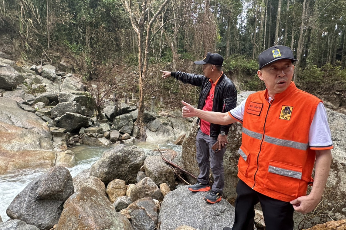 จากนั้นช่วงบ่ายคณะได้ร่วมกับอุทยานแห่งชาติบูโด-สุไหงปาดี ตรวจพื้นที่เสี่ยงน้ำป่าไหลหลากบริเวณน้ำตกปาโจ อ.บาเจาะ ซึ่งเป็นแหล่งต้นน้ำที่มาจากเทือกเขาบูโด หากเกิดน้ำป่าไหลหลากจะได้แจ้งเตือนให้ประชาชนที่อาศัยอยู่เชิงเขาเตรียมตัวรับมืออพยพ ต่อมาได้ลงพื้นที่บ้านบาเฆะ ต.โคกเคียน อ.เมืองนราธิวาส ซึ่งประสบปัญหาน้ำทะเลกัดเซาะชายฝั่ง ซึ่งทาง อบต.โคกเคียน ได้ก่อสร้างแนวคันหินกันคลื่นกัดเซาะความยาว 5 กิโลเมตร แต่บางจุดน้ำทะเลยังสามารถเซาะเข้ามาได้ รวมไปถึงบริเวณปากแม่น้ำบางนราที่จะระบายน้ำลงสู่ทะเลซึ่งมีระดับน้ำเกือบเท่าตลิ่ง จึงเป็นจุดที่ต้องเฝ้าระวังในช่วงนี้
