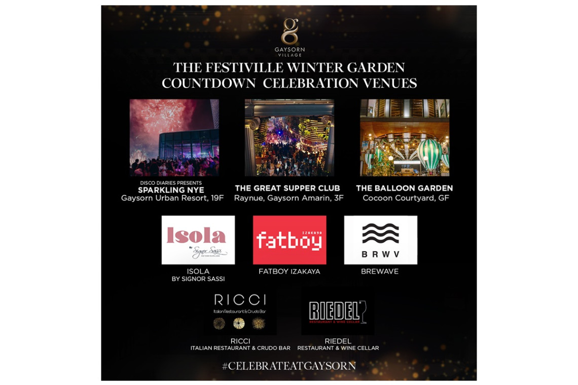 พลาดไม่ได้! กับกิจกรรมไฮไลท์สุดเอ็กซ์คลูซีฟแห่งปี กับค่ำคืนแห่งการเคาท์ดาวน์อันแสนพิเศษ ที่พร้อมให้ทุกคนได้มา #CelebrateAtGaysorn ได้แก่