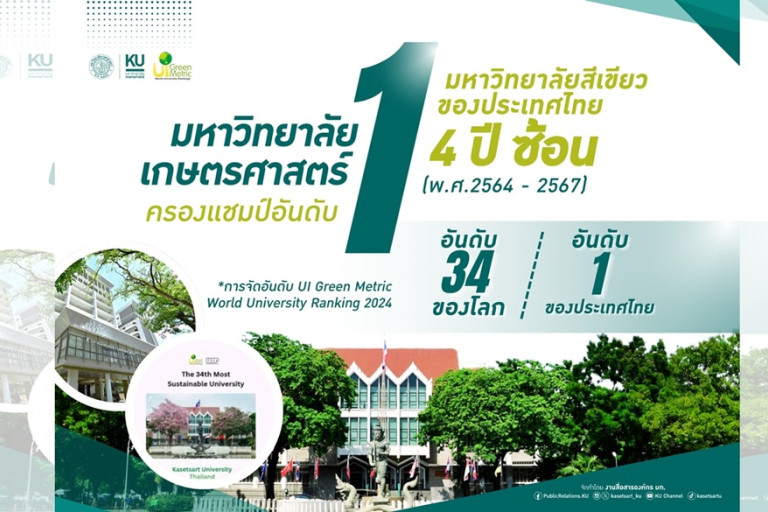 มหาวิทยาลัยเกษตรศาสตร์ ยังเป็นที่หนึ่งของความ เขียว ของไทย อันดับที่ 34 ของโลก จากการจัดอันดับ ของ UI Green Metric World University Ranking 2024
