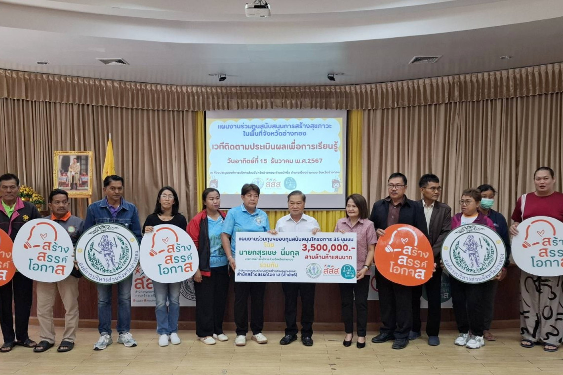 วันที่ 15 ธ.ค.67 แผนงานร่วมทุนสนับสนุนการสร้างเสริมสุขภาวะจังหวัดอ่างทอง นำโดยนายกสุรเชษ นิ่มกุล นายก อบจ.อ่างทอง มอบนโยบายการดำเนินงานในเวทีติดตามประเมินผลเพื่อการเรียนรู้ ภายใต้ความร่วมมือการดำเนินงานของแผนงานร่วมทุนระหว่างองค์การบริหารส่วนจังหวัดอ่างทอง และสำนักสร้างสรรค์โอกาส สำนัก6 สำนักงานกองทุนสนับสนุนการสร้างเสริมสุขภาพ (สสส.) โดยเวทีในวันนี้เป็นเวทีการติดตามประเมินผลลัพธ์จากการดำเนินงานภาคีรายย่อย ที่ดำเนินงานมาระยะเวลา 4 เดือน ซึ่งในการดำเนินงานสร้างเสริมสุขภาพเพื่อส่งเสริมกลุ่มเป้าหมายภายใต้การดำเนินงาน 3 ประเด็นคือ 1.การสร้างเสริมสุขภาพผู้สูงอายุ 2.การสร้างเสริมสุขภาพเด็กและเยาวชน และ 3. ส่งเสริมกลไกการป้องกันปัญหาสารเสพติดในชุมชน โดยวันนี้ได้ใช้เครื่องมือ บันไดผลลัพธ์เป็นเครื่องมือในการชวนทบทวนผลลัพธ์จากการดำเนินงานโดยแบ่งกลุ่มแลกเปลี่ยนเรียนรู้เป็นรายประเด็น