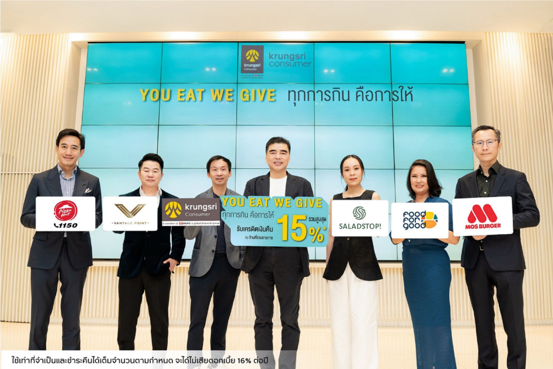 บัตรเครดิตในกลุ่มกรุงศรี คอนซูมเมอร์ จับมือพันธมิตรร้านอาหารชั้นนำ ชวนสมาชิกบัตรฯ ร่วมเฉลิมฉลองเทศกาลแห่งความสุขด้วยการแบ่งปัน สมทบทุนให้กับโครงการ FOOD FOR GOOD กับแคมเปญ “YOU EAT WE GIVE ทุกการกิน คือการให้” ตั้งแต่ 1 พฤศจิกายน 2567 ถึง 28 กุมภาพันธ์ 2568 เพียงใช้จ่ายผ่านบัตรตามเงื่อนไขที่ร้านอาหารที่ร่วมรายการ อาทิ พิซซ่า ฮัท, แวนเทจพอยท์, สลัดสต๊อป และมอส เบอร์เกอร์ และร้านอาหารที่ร่วมรายการกว่า 1,879 สาขาทั่วไทย ตั้งแต่ 1,000 บาทขึ้นไป/เซลส์สลิป รับส่วนลดสูงสุด 15% และรับเครดิตเงินคืนรวมสูงสุด 15% พร้อมรับความอิ่มใจ ที่ได้ร่วมสนับสนุนโภชนาการที่ดีเพื่อเด็กไทย
