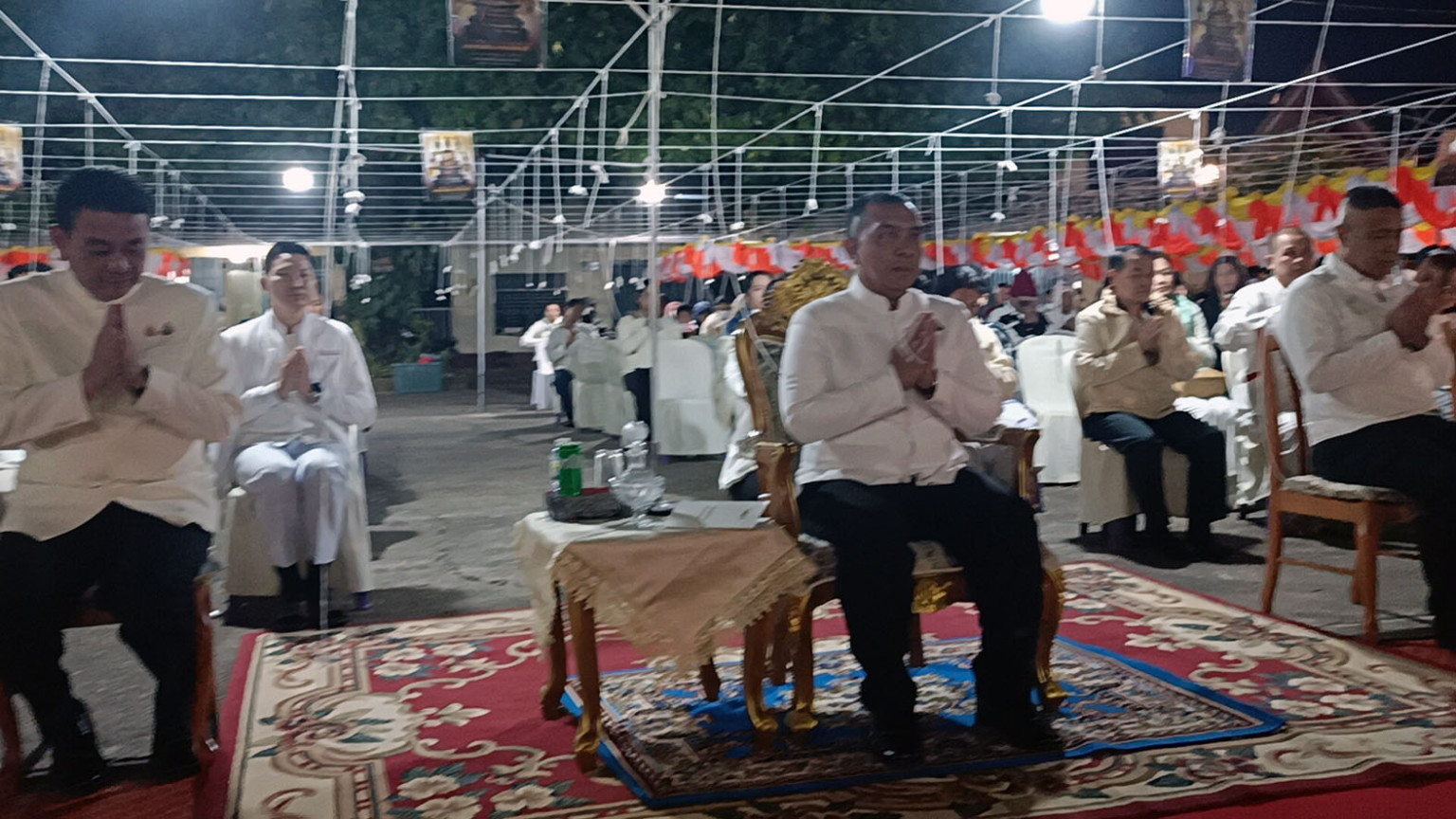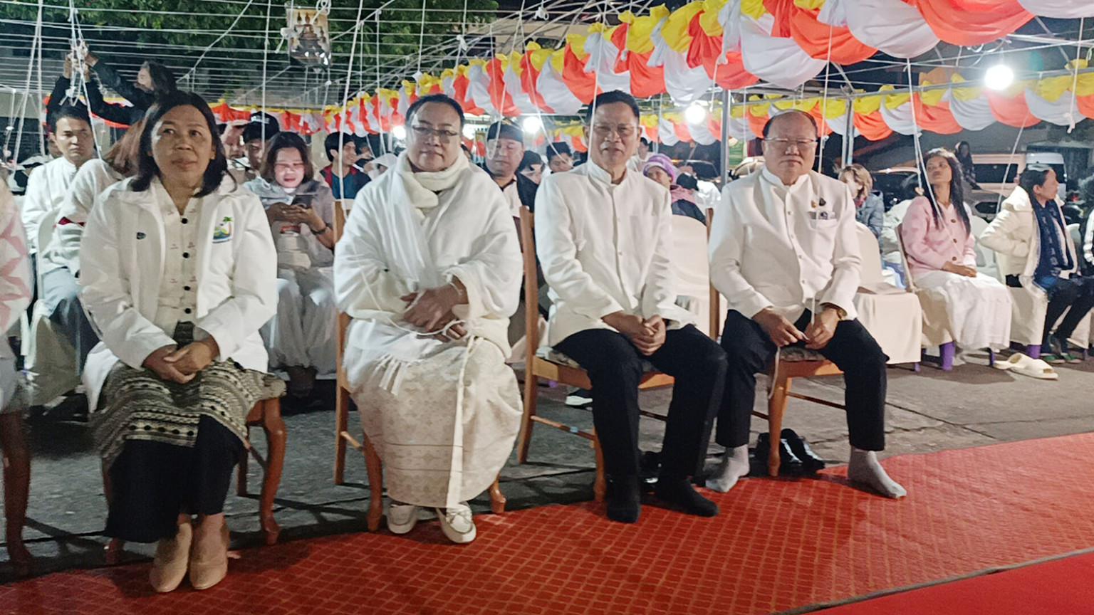 โดยมี นายนคร ศิริปริญญานันท์ รอง ผวจ.นายวรพันธ์ ชำนิยันต์ ปลัดจังหวัด นายสมหวัง อารีย์เอื้อ หัวหน้าสำนักงานจังหวัดบึงกาฬกาฬ นายธีระพล ขุนพานเพิง นอภ.เมืองบึงกาฬ นายอภิชัย จำปานิล หน.สำนักงานป้องกันและบรรเทาสาธารณภัยจังหวัดบึงกาฬ นางพัชรนันท์ แก้วจินดา วัฒนธรรมจังหวัดบึงกาฬ นางสาวรุงอรุณ ธิมาชัย ผอ.สำนักงานพระพุทธศาสนาจังหวัดบึงกาฬ นายชินท์ณภัทร ก้อนคำ ผอ.วิทยาลัยเทคนิคบึงกาฬ ส่วนราชการ พุทธศาสนิกชน ร่วมพิธีในงานจำนวนมาก ท่ามกลางอากาศหนาวและลมเย็น ประมาณ 13 องศาเซลเซียส