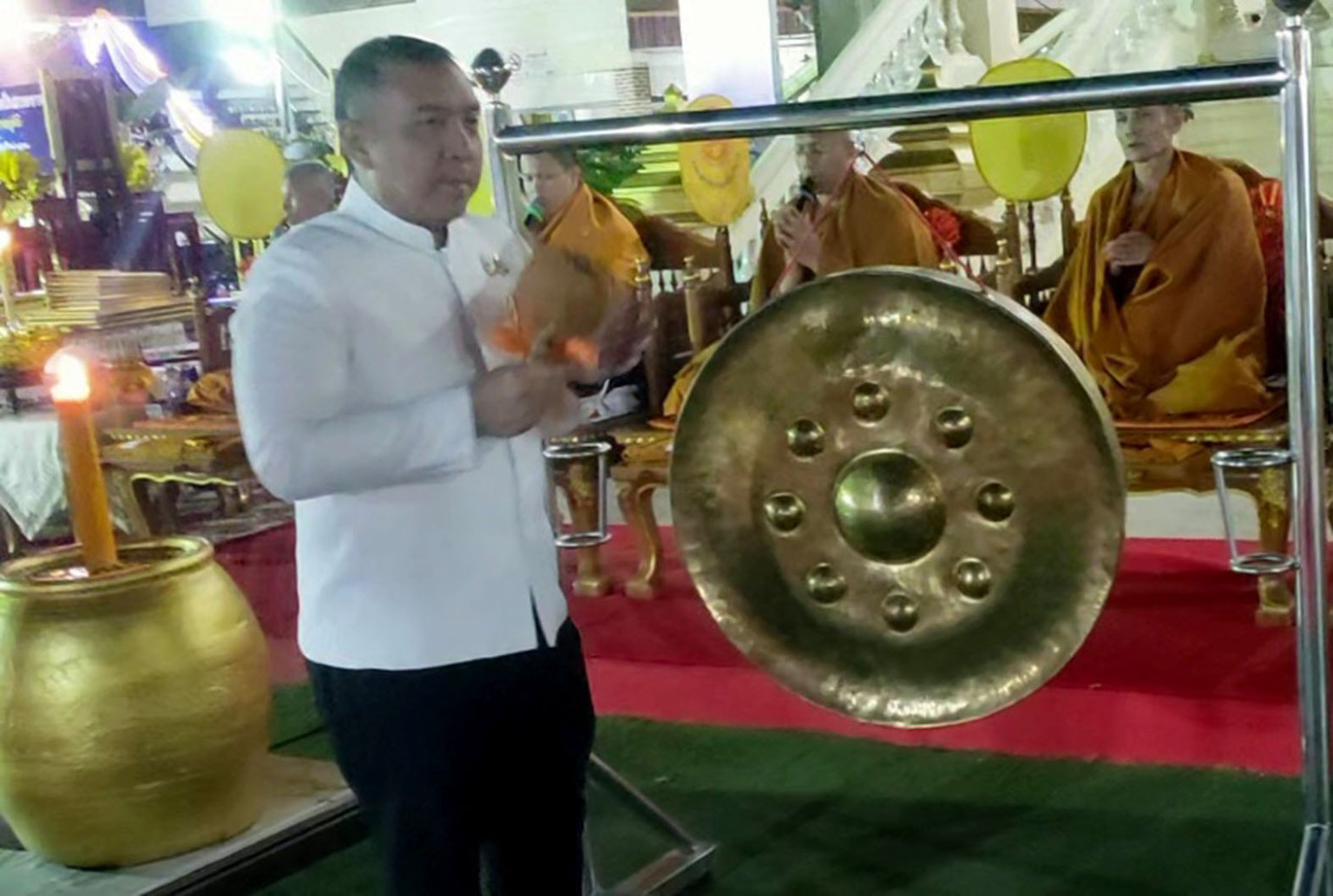 ภายหลังสวนมนต์ข้ามปีจบ นายจุมพฏ วรรณฉัตรสิริ ผวจ.ได้ลั่นฆ้องชัยแสดงว่าขึ้นศักราชปีใหม่ของไทยแล้ว พระสงฆ์สวดชยันโตพร้อมกับพรมน้ำมนต์ให้รับเอาโชคเอาชัยในวันขึ้นปีใหม่ 2568 ถ้วนทั่วทุกคน
