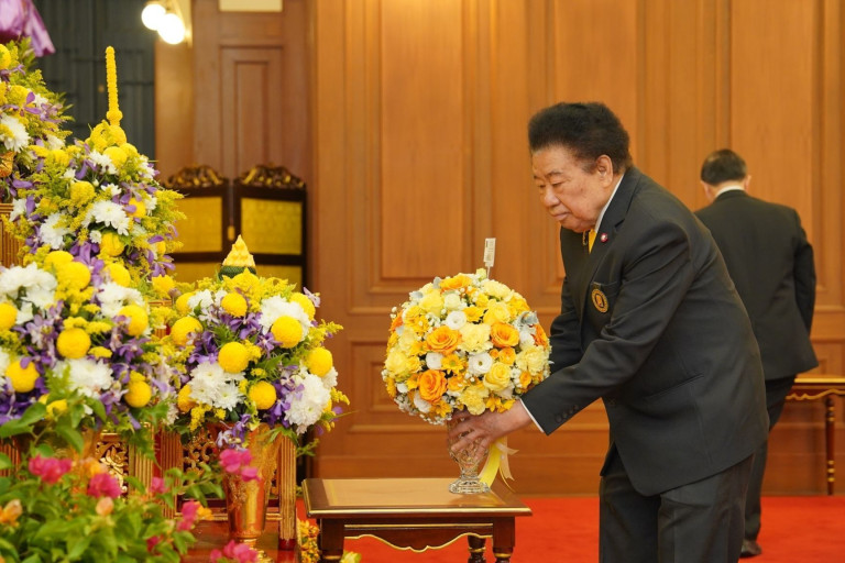 นำแจกันดอกไม้ทูลเกล้าทูลกระหม่อมถวายหน้าพระบรมฉายาลักษณ์ และลงนามถวายพระพร พระบาทสมเด็จพระเจ้าอยู่หัว และสมเด็จพระนางเจ้าฯ พระบรมราชินี เนื่องในโอกาสวันขึ้นปีใหม่ พุทธศักราช 2568