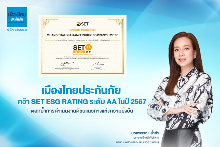 บริษัท เมืองไทยประกันภัย จำกัด (มหาชน) หรือ MTI ได้รับผลประเมินหุ้นยั่งยืน Set ESG Rating ในระดับ AA ประจำปี 2567 จากการประเมินและจัดอันดับของตลาดหลักทรัพย์แห่งประเทศไทย ตอกย้ำความสำเร็จในการดำเนินงานตามหลักกลยุทธ์ความยั่งยืน ด้วยการให้ความสำคัญกับสิ่งแวดล้อม สังคม และธรรมาภิบาล ตามแนวทาง ESG (Environment, Social, Governance and Economic) ตลอดจนการคำนึงถึงผู้มีส่วนได้เสียทุกกลุ่ม และมุ่งสร้างผลตอบแทนที่ดีให้แก่ผู้ลงทุนในระยะยาว