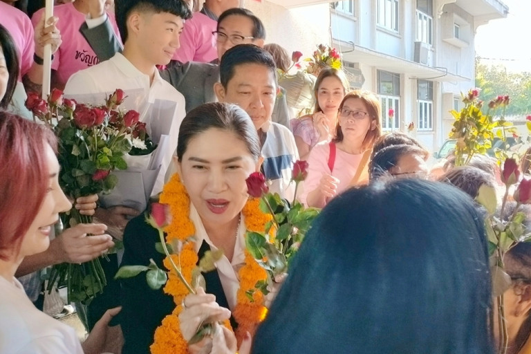 เมียนายกก้อย "ขวัญกมล ฉายแสง" จ่อยึดเก้าอี้นายกเทศบาลเมืองแปดริ้วแบบไร้คู่แข่ง หลัง "กลยุทธ ฉายแสง" ลาออกไปชิงเก้าอี้นายก อบจ.ฉะเชิงเทรา ขณะกองเชียร์อึกทึกระดมกันมามอบช่อกุหลาบเต็มหน้ามุขเชิงบันไดทางขึ้นสำนักงานเทศบาล