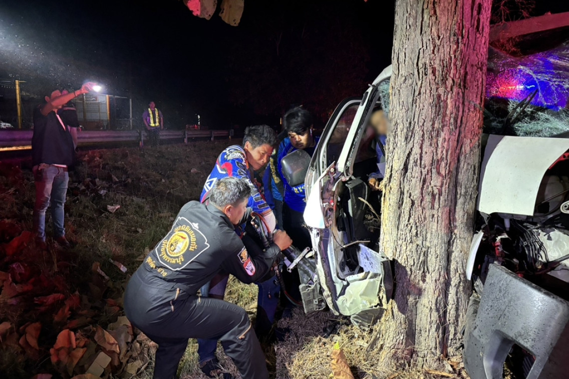 เมื่อเวลา 00.30 น. วันที่ 6 ม.ค.68 พ.ต.ต..อนุรุต นวมทอง สว.สอบสวน สภ.ศรีประจันต์ ได้รับแจ้งเหตุรถตู้ชนต้นไม้เกาะกลางถนนสาย 340 ขาเข้ากรุงเทพมหานคร จึงได้เดินทางไปตรวจสอบเหตุพร้อมด้วยเจ้าหน้ามูลนิธิเสมอกันกู้ภัยสุพรรณบุรี