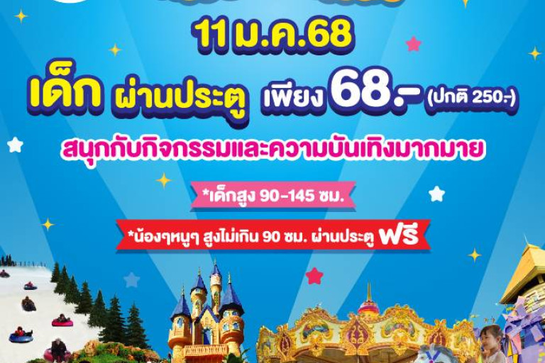 นางสาวรัสรินทร์ มิลินวรพัฒน์ ผู้จัดการฝ่ายการตลาด สวนสนุกดรีมเวิลด์ เปิดเผยว่า ดรีมเวิลด์ สวนสนุกในฝันของเด็กๆ มอบของขวัญแก่น้องๆ หนูๆ ในวันเด็กแห่งชาติ วันเสาร์ ที่ 11 มกราคม 2568 นี้ โดยเด็ก สูงไม่เกิน 145 เซนติเมตร ผ่านประตู 68 บาท (ปกติ 250 บาท ) ถ้าสูงไม่เกิน 90 เซนติเมตร ผ่านประตู ฟรี !!! หรือซื้อบัตรรวมเครื่องเลน เพียง 525 บาท ( ปกติ 600 บาท) พบกับกิจกรรมมากมาย ใครชอบศิลปะ มาประกวดระบายสี ลุ้นรับบัตรเที่ยวดรีมเวิลด์ ฟรี และสนุกสนานกับโชว์จากเหล่ามาสคอต การ์ตูนดัง อาทิ เหล่าฮีโร่ “ขบวนการคิงโอเจอร์” จากช่องการ์ตูนคลับ , เกมส์แจกของขวัญ ณ เวทีแฟนตาซีฮอลล์ อีกทั้งของขวัญจากบูธต่างๆ ที่นำมาแจกกันตลอดวัน ชมการแสดงฮอลลีวู้ดแอคชั่น 3 รอบ พิเศษ 11.00 น. ,13.00 น. 16.00 น. และขบวนพาเหรดดาราการ์ตูน รอบ 15.00 น. กิจกรรมแน่น โชว์เต็ม ตลอดวัน คุ้มจริง..