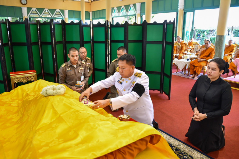 ผู้ว่าราชการจังหวัดชลบุรี ร่วมพิธีพระราชทานน้ำหลวงสรงศพพระเทพสุทธาจารย์ (อนันต์ กลฺยาณวฑฺฒโน) อดีตเจ้าอาวาสวัดเขาบางทราย
