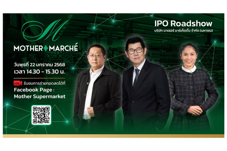 เตรียมนับถอยหลังลงสนามเทรด mai ในไตรมาสแรกปี 2568 สำหรับ บมจ. มาเธอร์ มาร์เก็ตติ้ง หรือ MOTHER ผู้ดำเนินธุรกิจค้าปลีกและค้าส่งสินค้าอุปโภคบริโภค ผ่านสำนักงานใหญ่และร้านสาขา ชื่อ "Mother Supermarket" และ "Mother Marche" รวม 20 สาขา ในจังหวัดกระบี่ สุราษฎร์ธานี และพังงา รวมถึงมีศูนย์กระจายสินค้า 2 แห่ง อยู่ที่จังหวัดกระบี่ และสุราษฎร์ธานี เดินหน้าจัดโรดโชว์ (Roadshow) ในวันพุธที่ 22 มกราคม 2568 ผ่านช่องทาง Facebook Page: Mother Supermarket ตั้งแต่เวลา 14.30 – 15.30 น.