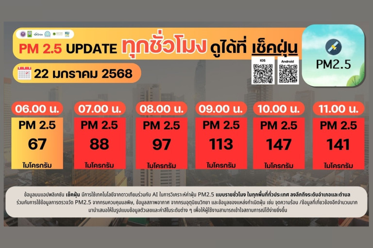 เวลา 10.00 น. ค่าฝุ่น PM 2.5 อยู่ที่ 147 ไมโครกรัม