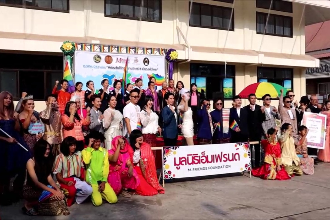 อุดรม่วนสุดคักๆ จดทะเบียนคู่รักสมรสเท่าเทียม จดทะเบียนวันนี้ที่ว่าการอำเภอเมืองอุดร 6 คู่ ทุกคนตื้นตันใจรอวันนี้มานานโบกธงสายรุ้งสะบัดวันนี้ที่รอคอย ผู้ว่ารองผู้ว่า ร่วมเป็นสักขีพยานมอบทะเบียนสมรสสีชมพูให้ด้วย เสร็จพิธีร่วมร้องเพลงเต้นรำกันอย่างสนุกสนาน