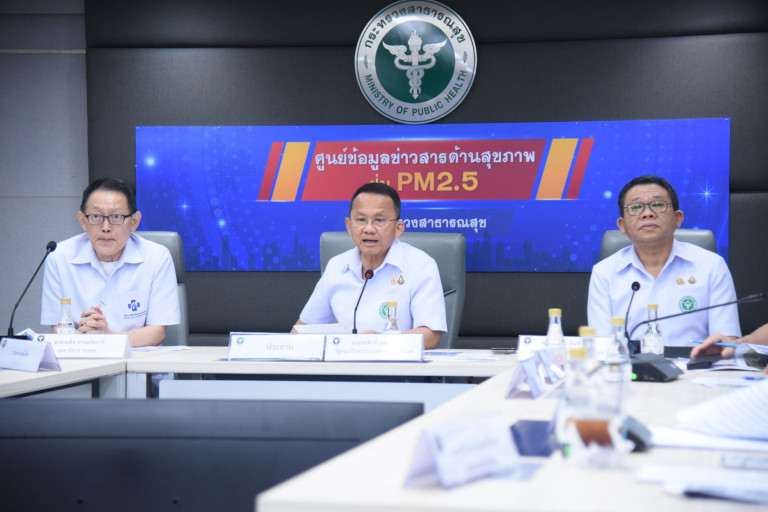วันที่ 24 ม.ค.2568 นายสมศักดิ์ เทพสุทิน รัฐมนตรีว่าการกระทรวงสาธารณสุข เป็นประธานการประชุมแก้ปัญหาหมอกควันและฝุ่นละอองขนาดเล็ก PM 2.5 โดยมี นพ.นพ.วีรวุฒิ อิ่มสำราญ รองปลัดกระทรวงสาธารณสุข นพ.จเด็จ ธรรมธัชอารี เลขาธิการสำนักงานหลักประกันสุขภาพแห่งชาติ (สปสช.) นพ.ภาณุมาศ ญาณเวทย์สกุล อธิบดีกรมควบคุมโรค นพ.ธิติ แสวงธรรม รองอธิบดีกรมอนามัย นพ.ธนินทร์ เวชชาภินันท์ รองอธิบดีกรมการแพทย์ และหน่วยงานที่เกี่ยวข้องเข้าร่วมประชุม