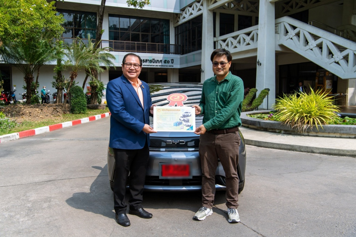 เมื่อวันที่ 24 ม.ค.68 ได้มีการจัดพิธีมอบรางวัลแก่ผู้โชคดีถูกรางวัลสลากบำรุงสภากาชาดไทยของมหาวิทยาลัยเกษตรศาสตร์ รางวัลที่ 2 รถยนต์ไฟฟ้า BYD รุ่น NEW BYD DOLPHIN Extended Range มูลค่า 709,900 บาท 1 รางวัล ให้แก่ นายภาณุวัฒน์ ใจธรรม ผู้โชคดีซื้อสลากกาชาดมหาวิทยาลัยเกษตรศาสตร์ ในระบบออนไลน์ โอกาสนี้ ผศ.ดร.กฤษณ์ วันอินทร์ รองอธิการบดีฝ่ายนวัตกรรมและพันธกิจเพื่อสังคม มหาวิทยาลัยเกษตรศาสตร์ ร่วมแสดงความยินดีและมอบรางวัลให้กับผู้ที่ถูกรางวัลสลากบำรุงสภากาชาดไทย ณ อาคารสารนิเทศ 50 ปี มหาวิทยาลัยเกษตรศาสตร์