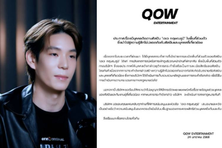 นอกจากนี้บริษัทฯ ขอเรียนให้ทราบว่าไม่อนุญาตให้มีการเปิดเผย เผยแพร่หรือซื้อขายข้อมูลส่วนบุคคลของศิลปินและทีมงานผู้ที่เกี่ยวข้อง หากพบการกระทำดังกล่าว บริษัทฯ จะดำเนินการทางกฎหมายทันที บริษัทฯ ขอขอบคุณแฟนคลับทุกท่านที่ให้การสนับสนุนและห่วงใย ‘เจเจ กฤษณภูมิ’ เสมอมาและหวังเป็นอย่างยิ่งว่าความสนับสนุนในอนาคตจะดำเนินไปบนพื้นฐานของการเคารพสิทธิส่วนบุคคลซึ่งกันและกัน จึงเรียนมาเพื่อทราบโดยทั่วกัน QOW ENTERTAINMENT 24 มกราคม 2568”