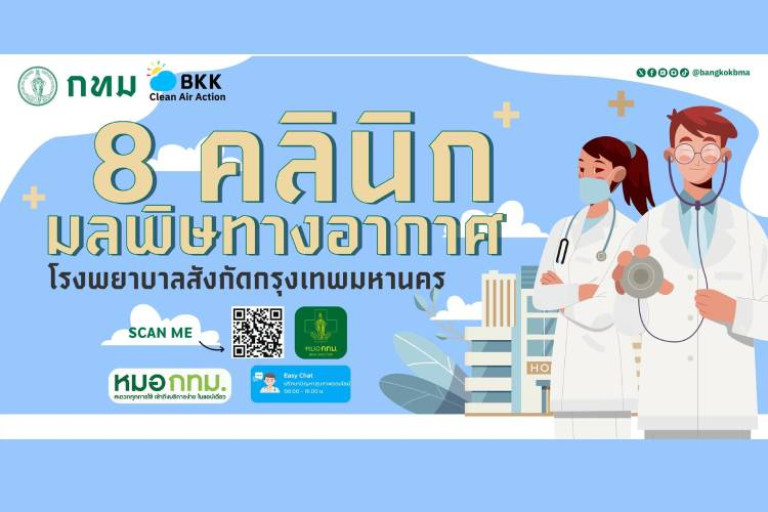 เพจเฟซบุ๊ก กองจัดการคุณภาพอากาศและเสียง สำนักสิ่งแวดล้อม กรุงเทพมหานคร โพสต์ข้อความระบุว่า...กทม.ชี้เป้า 8 คลินิก มลพิษทางอากาศ โรงพยาบาลในสังกัดกรุงเทพมหานคร ประชาชนกลุ่มเสี่ยง ระมัดระวังเป็นพิเศษ