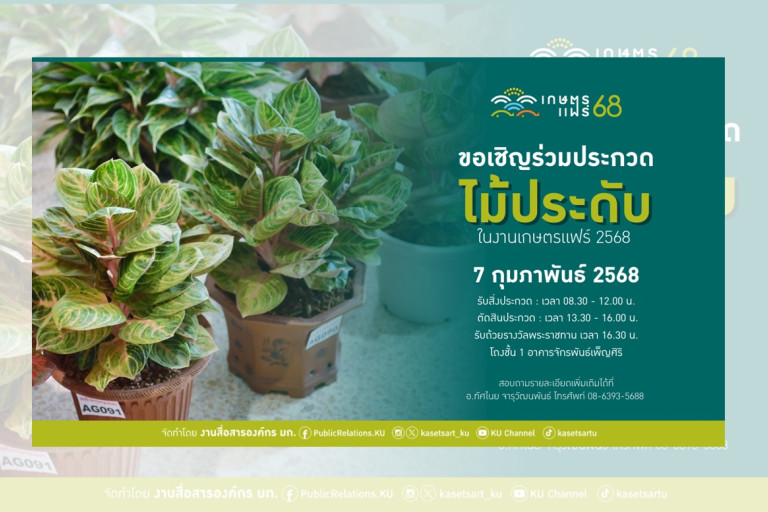 มหาวิทยาลัยเกษตรศาสตร์ ร่วมกับ ชมรมผู้พัฒนาไม้ประดับ 2000 ขอเชิญผู้สนใจเข้าชมและส่งไม้ประดับเข้าประกวด ในงานเกษตรแฟร์ ประจำปี 2568 ในวันศุกร์ที่ 7 กุมภาพันธ์ 2568 ณ บริเวณโถงด้านล่างอาคารจักรพันธ์เพ็ญศิริ มหาวิทยาลัยเกษตรศาสตร์ บางเขน โดยมีการประกวดดังนี้