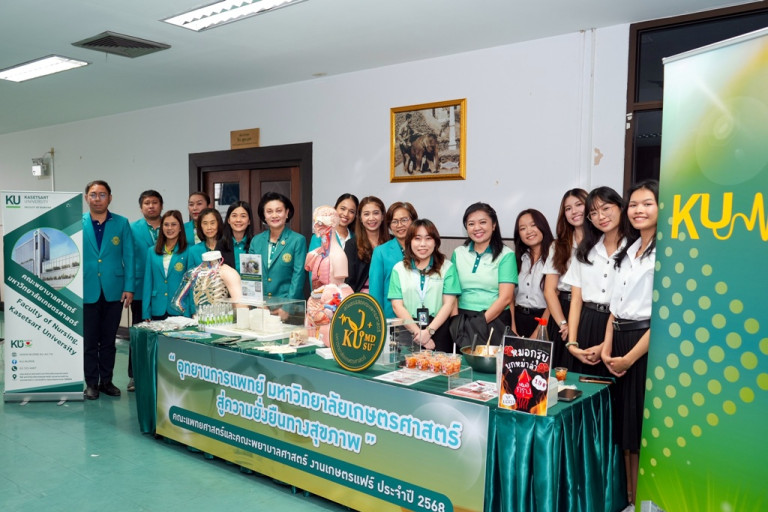 งานเกษตรแฟร์ ประจำปี 2568 ภายใต้แนวคิด “เศรษฐกิจเจริญก้าวไกล สังคมไทยไร้คาร์บอน” กำหนดจัดขึ้นระหว่างวันที่ 31 ม.ค.-8 ก.พ. 68 รวม 9 วัน เวลา 9.00 น.-22.00 น. โดยประมาณ ณ มหาวิทยาลัยเกษตรศาสตร์ บางเขน โดยในปีนี้ คณะแพทยศาสตร์ และ คณะพยาบาลศาสตร์ ร่วมกันจัดกิจกรรมบริการวิชาการอย่างเข้มข้น ภายใต้หัวข้อ “อุทยานการแพทย์ มหาวิทยาลัยเกษตรศาสตร์ สู่ความยั่งยืนทางสุขภาพ” ประกอบด้วย นิทรรศการด้านการแพทย์และสุขภาพที่เน้นการสร้างความตระหนักรู้และการส่งเสริมสุขภาพที่ยั่งยืน นิทรรศการแนะนำคณะแพทยศาสตร์ และ คณะพยาบาลศาสตร์ การบรรยาย เสวนาทางวิชาการ เผยแพร่องค์ความรู้ทางการแพทย์และเวชศาสตร์การเกษตร รวมถึงการบริการทางการแพทย์และพยาบาล การเล่นเกมส์ ตอบปัญหา รับของที่ระลึก การให้บริการฉีดวัคซีนไข้หวัดใหญ่แก่ประชาชน ฟรี จำนวน 200 คน และการรับบริจาคเงินสมทบการก่อสร้างอาคารโรงพยาบาลเกษตรศาสตร์ โดยกิจกรรมของคณะแพทยศาสตร์ และ คณะพยาบาลศาสตร์ จัดระหว่างวันที่ 1-8 กุมภาพันธ์ 2568 ณ อาคารวิทยบริการ บริเวณ ประตู 1 งามวงศ์วาน สำนักพัฒนาการเรียนรู้ตลอดชีวิต มหาวิทยาลัยเกษตรศาสตร์