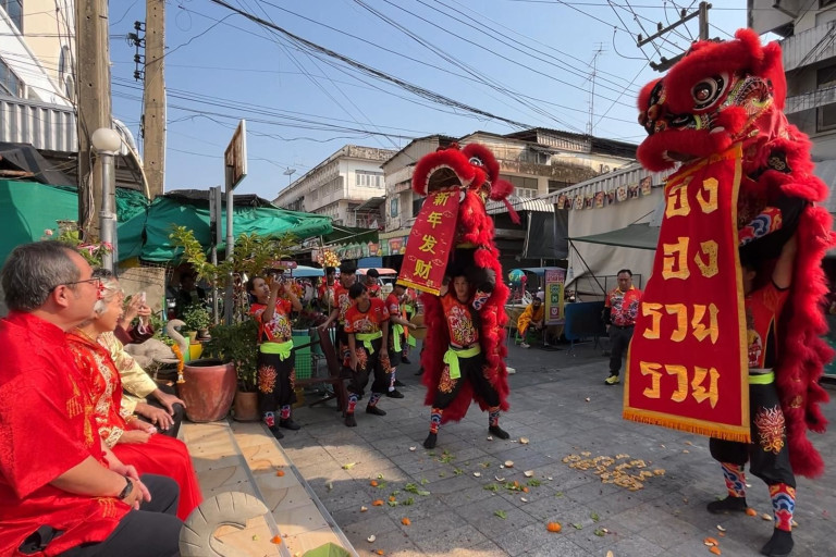 พร้อมทั้งจัดให้มีการแสดงเชิดสิงโต มังกรเพื่อความเป็นสิริมงคล เนื่องในเทศกาลตรุษจีน ประจำปี 2568 ท่ามกลางเหล่าบรรดาพ่อค้า-แม่ค้า และผู้ที่มาจับจ่ายเลือกซื้อสินค้า ต่างทยอยกันมาเลือกซื้อของไหว้ ทั้งชุดซาแซ และชุดโหงวแซ รวมทั้งขนมเทียน ขนมเข่ง ขนมปุยฝ้าย ผลไม้และของไหว้ชนิดต่างๆ เอาฤกษ์เอาชัย รับปีมะเส็ง (งูเล็ก) อย่างคึกคัก