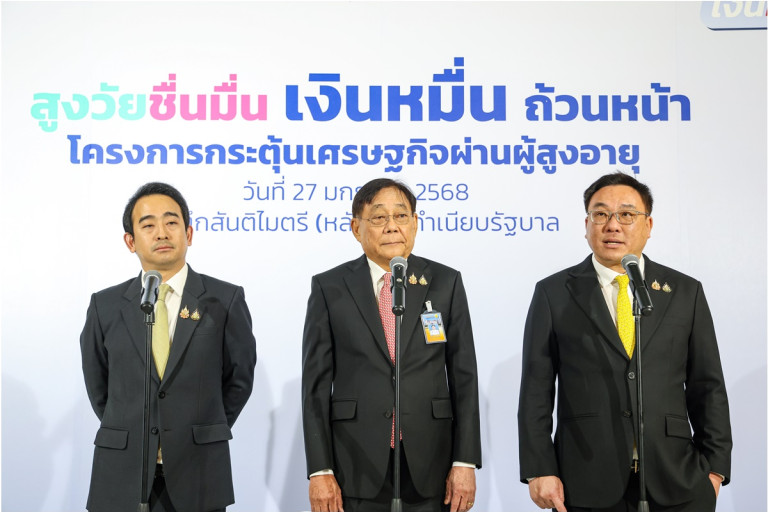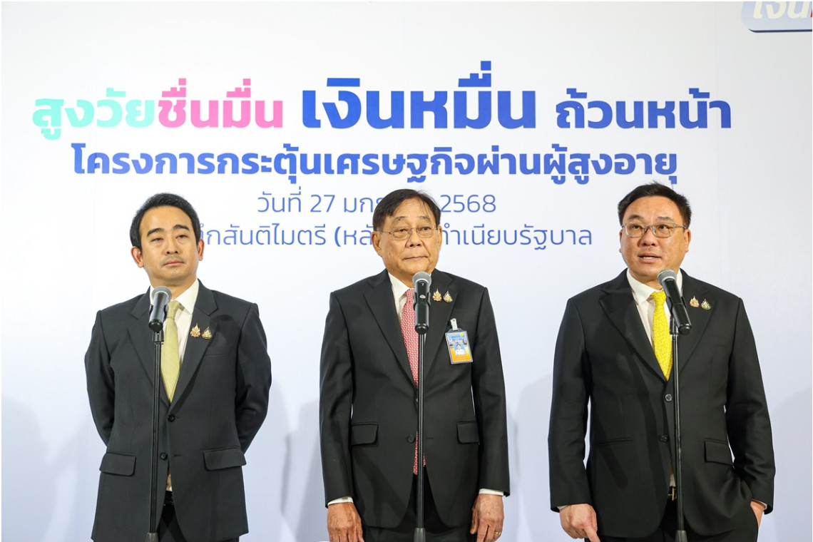 เมื่อวันที่ 27 ม.ค.68 นายพรชัย ฐีระเวช ผู้อำนวยการสำนักงานเศรษฐกิจการคลัง ในฐานะโฆษกกระทรวงการคลัง เปิดเผยว่า ในวันนี้ (27 ม.ค.) นางสาวแพทองธาร ชินวัตร นายกรัฐมนตรี พร้อมคณะรัฐมนตรี ได้เปิดตัวโครงการกระตุ้นเศรษฐกิจผ่านผู้สูงอายุ (โครงการฯ) ณ ตึกสันติไมตรี (หลังใน) ทำเนียบรัฐบาล โดยเป็นวันที่กรมบัญชีกลางได้ทำการโอนเงิน 10,000 บาท ให้แก่ผู้ได้รับสิทธิของโครงการฯ จำนวน 3,025,596 ราย