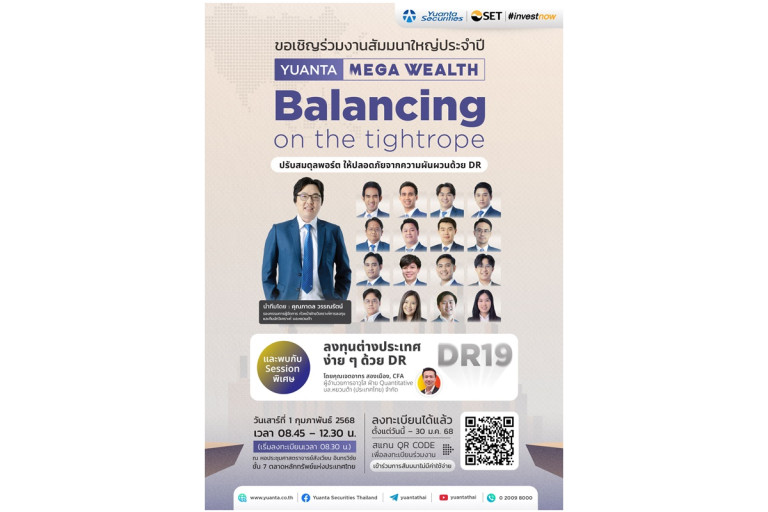 "หยวนต้า" ชวนร่วมงานสัมมนา “Yuanta Mega Wealth 2025 : ปรับสมดุลพอร์ตให้ปลอดภัยจากความผันผวน ด้วย DR (Balancing on the tightrope)”