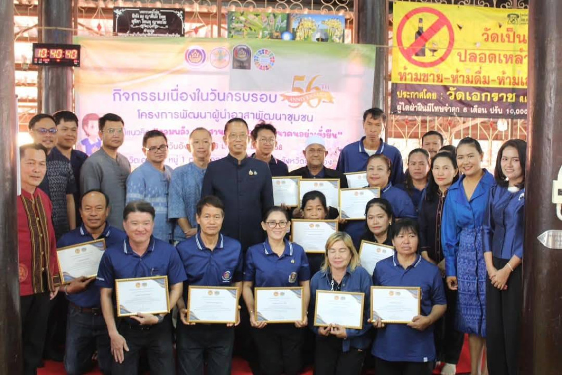 วันที่ 28 มกราคม 2568 เวลา 09.30 น. นายทัศนัย สุธาพจน์ รองผู้ว่าราชการจังหวัดอ่างทอง เป็นประธานการจัดกิจกรรมเนื่องในวาระครบรอบ 56 ปี ผู้นำอาสาพัฒนาชุมชน ประจำปี 2568 โดยมี นายไชยา พิมสิงห์ พัฒนาการจังหวัดอ่างทอง นายคงศักดิ์ สายวงศ์ ประชาสัมพันธ์จังหวัดอ่างทอง นายณัฐวุฒิ อนุโยธา นายอำเภอป่าโมก นายทรงพล พูลสวัสดิ์ ประธานสภาเกษตรกรจังหวัดอ่างทอง ผู้อำนวยการกลุ่มงานฯ พัฒนาการอำเภอ พัฒนากร นักวิชาการ เจ้าหน้าที่สำนักงานพัฒนาชุมชนจังหวัดอ่างทอง/อำเภอ ผู้นำอาสาพัฒนาชุมชนทุกอำเภอ เข้าร่วมกิจกรรมฯ ณ วัดเอกราช ตำบลเอกราช อำเภอป่าโมก จังหวัดอ่างทอง